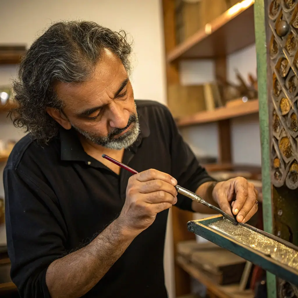 Omar specializes in hand-painted ceramics, blending traditional and modern styles.