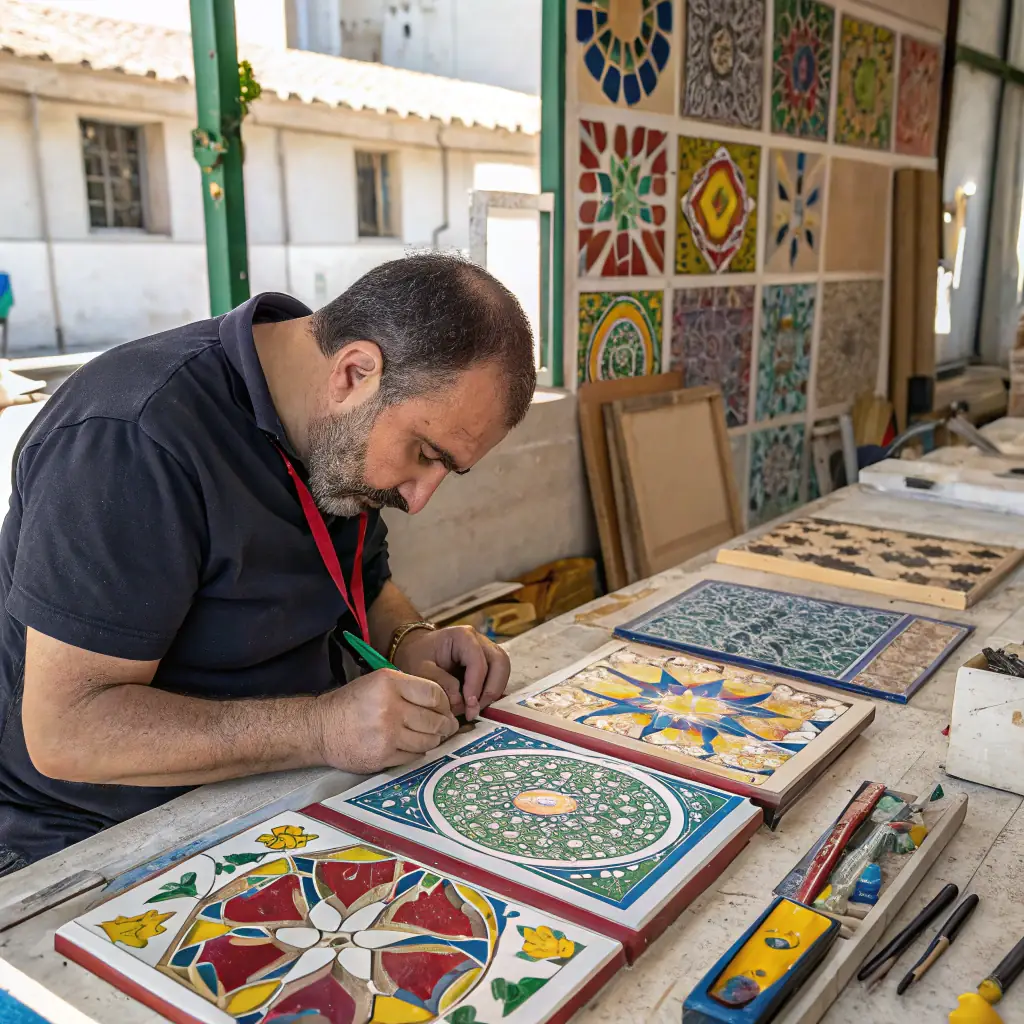 Omar specializes in hand-painted ceramics, blending traditional and modern styles.