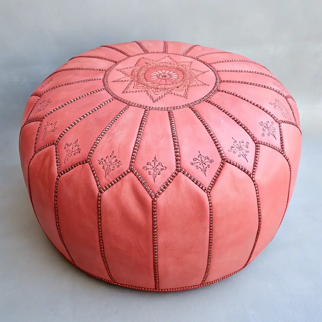 This handcrafted Moroccan pouf is made from durable fabric and filled with soft stuffing, providing comfortable seating or a stylish accent piece. It features traditional Moroccan embroidery and vibrant colors, making it a versatile addition to any home decor. Each pouf is handmade by skilled artisans, ensuring authenticity and quality.